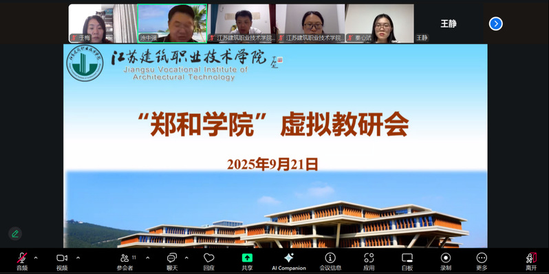 2025年9月21日晚8时,国际交流学院依托zoom平台,在线召开柬埔寨郑和学院教研会。会议由柬埔寨郑和学院、老挝郑和学院、国际中文教育教研室、外事科等全体成员参与,王静副院长主持。