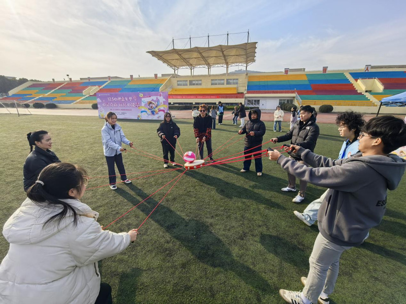本次活动融合心理健康教育与体育竞技元素,精心设置“重走长征路”“巧接彩珠”“同心筑梦”“袋鼠跳”等10项趣味挑战项目。活动现场,中外学子组队协作、并肩闯关,在奔跑跳跃间挥洒汗水,在默契配合中凝聚力量。这场别开生面的活动,不仅有效锻炼了学生的身体素质,更帮助大家在轻松愉悦的氛围里释放压力,提升探索未知、挑战自我的心理素质,深化了团队协作与沟通交流能力。